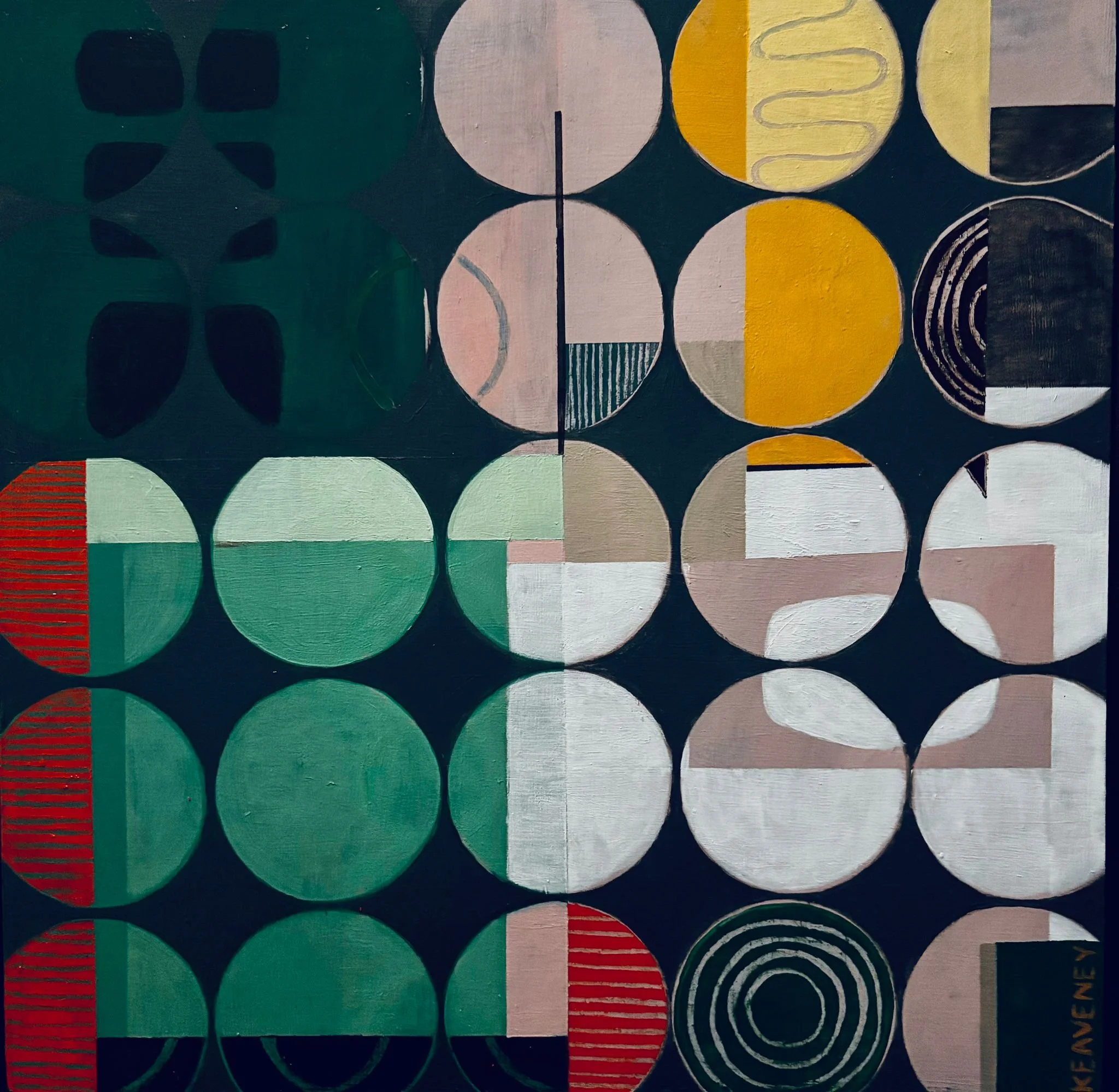 I paint with the aim of viewers interpreting their own meaning. My work is a personal enquiry first and then becomes its own encounter. I hope my paintings create a space where something resonates. That might be a sense of steadiness, curiosity, recognition or simply the pleasure and intrigue of colour and form. If someone sees something of themselves in the balance between order and wildness, or in the shifts within pattern and colour, then that feels like a meaningful outcome to me.